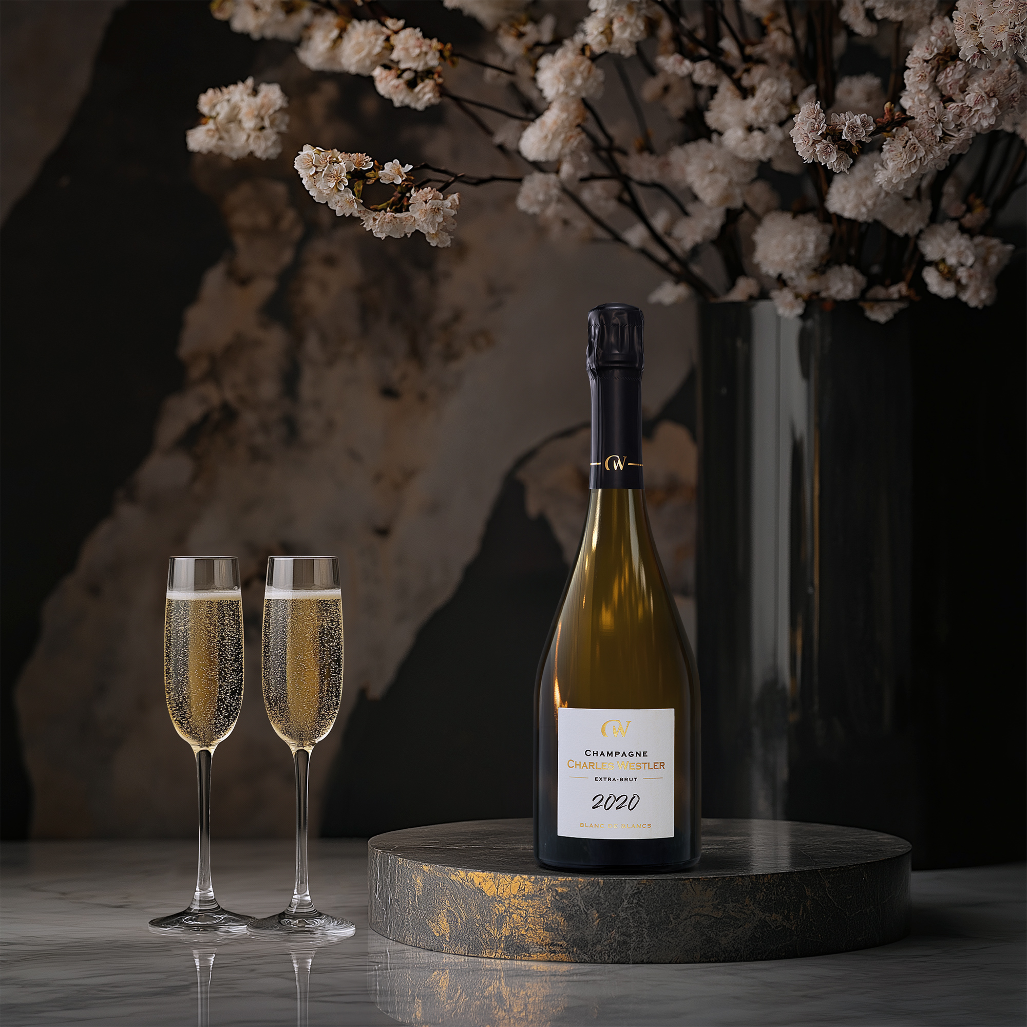 Charles Westler Blanc de Blanc Extra-Brut 2020 accompagnera parfaitement un repas comme un carpaccio de bar, un filet de sole ou une volaille par exemple.